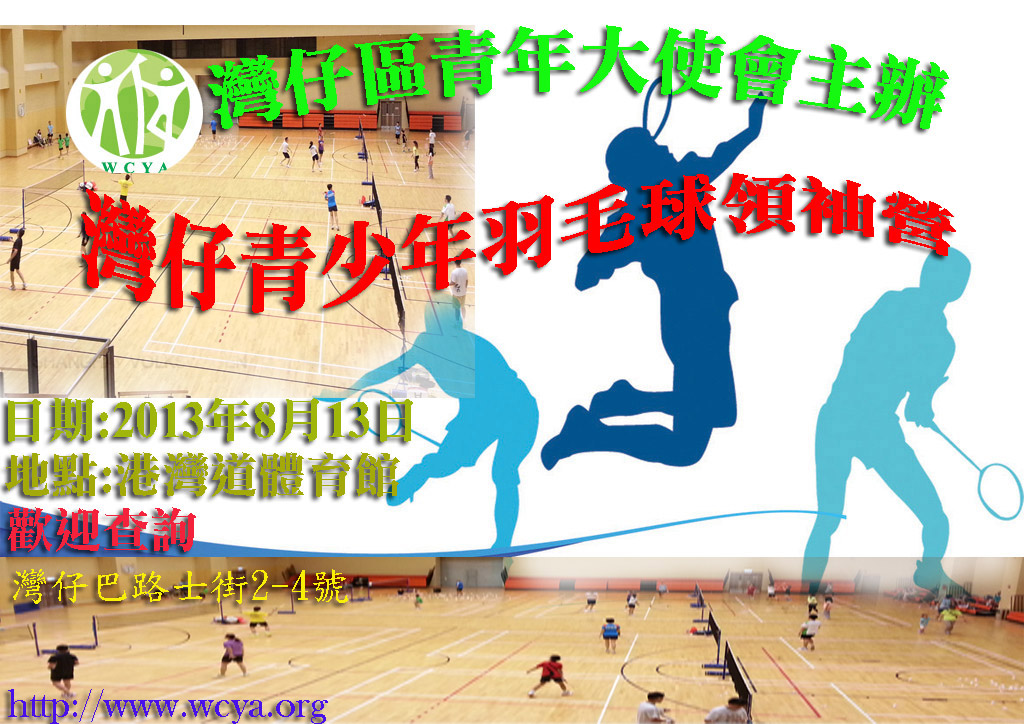 2013年8月13日 (星期日)本會在灣仔港灣運動場舉辦羽毛球領袖營活動,是次活動讓年青人學習領袖訓練。 |