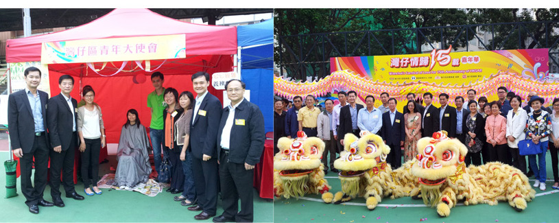 2013年7月1日 本會在灣仔修頓遊欒場參與場灣仔區舉辦『手牽手、慶回歸、獻愛心』大型回歸慶祝活動攤位, 當日設有開心剪髮服務,為多名街坊提供免費剪髮,20多位長者受惠,本會有12名委員及義工出席。 |